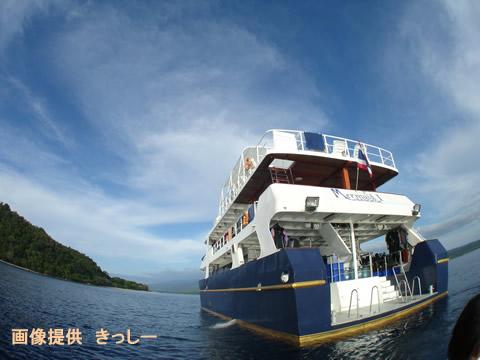 船にはキャプテン、ボートクルー、そして温泉ツアーから引き続きアシスタントをしてくれるソムチャイ、そしてソムチャイ友人のデーンの4名と我ら琥珀人魚チーム7名の合計11名。