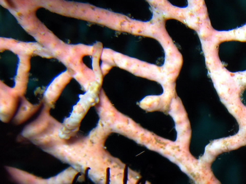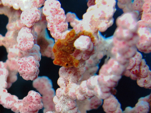 まずは25mまで一気に潜る、もちろん目指すはピグミーシーホース。カメラの液晶画面で見ていると目がおかしくなりそうなので、このあたりかなと見当をつけてシャッターを押すという技・・・で出来上がりは?
