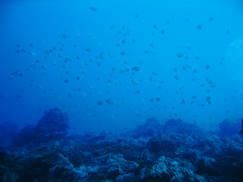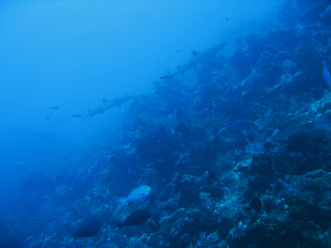 そういえば、去年も散々大物ポイント~って言われて潜ったけど、ログ見るとホワイトチップとGTって二行だけ書いてあった。今年のログも同様、ホワイトチップ二匹、ハナダイ群れの二行。
