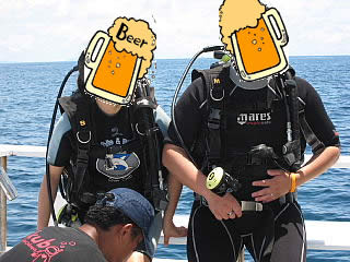 潜水チームは・・・ビールが飲めねぇ~、これは拷問だ。(哲さん、みをぽんさん、みよぴいさんの心の叫び)
