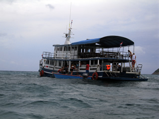 今回はプーケットからスラタニーのDONSAK港まで車(330キロ約4時間半)、DONSAKからカーフェリー(約1時間半/325B)でサムイ島のNANTHON港に到着後MAENAAM港まで移動して、そこからタオ島行きのカタマランスピードボート乗船(約1時間45分/550B)家を出たのが朝の3時、タオ島に到着したのが午後2時過ぎ、11時間の長旅でした。