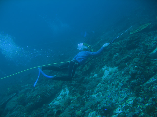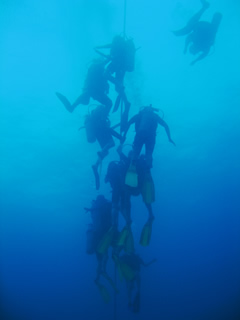 さすが講習天国タオ島、午後からは海洋実習生がいっぱいで、潜降ロープはご覧の通り。