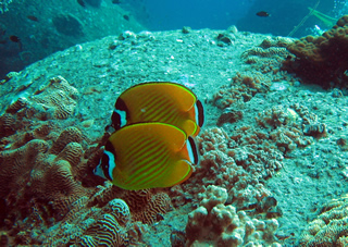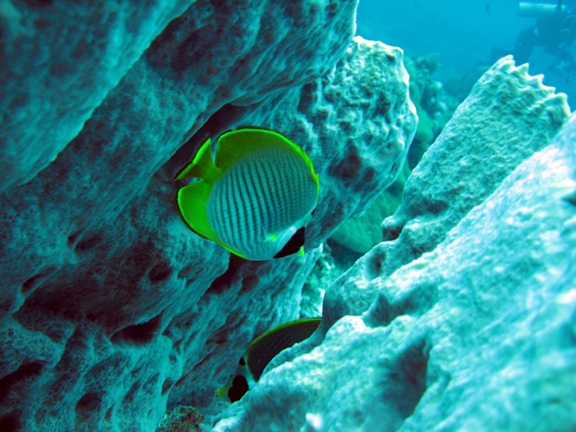 透明度20メートルオーバー、かなりきれいです。お目当てのツキチョウチョウウオ観察!