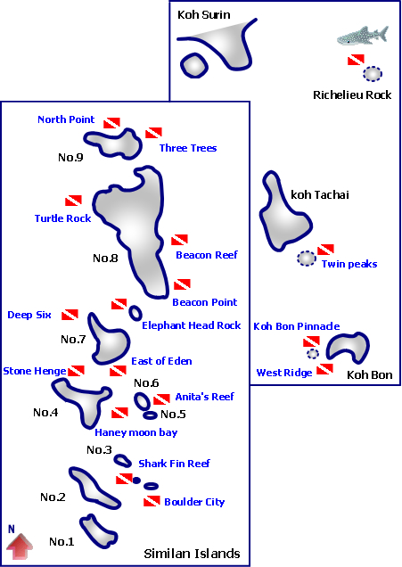 シミランを思わせるような岩場のポイントあり、エキサイティングなダイブサイトです。
